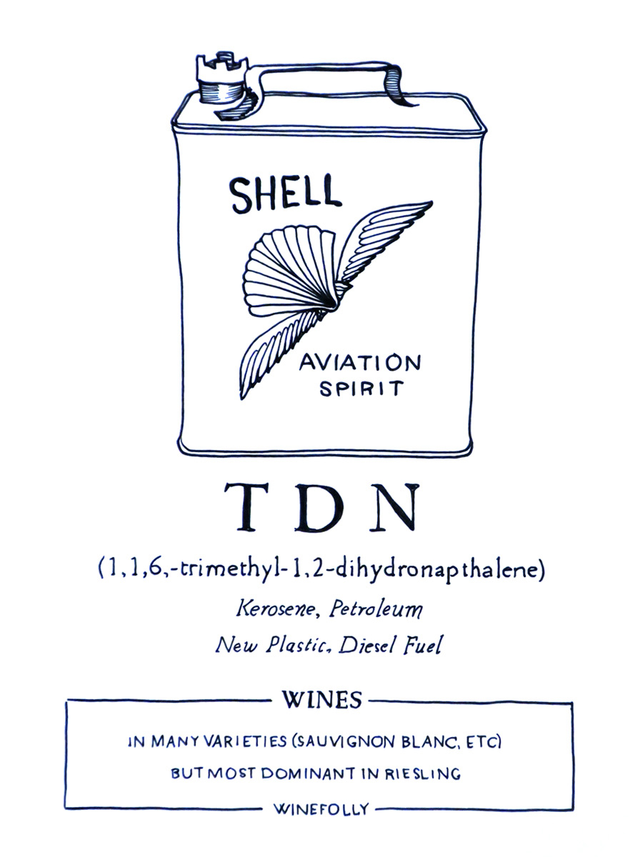 This aroma is one of the few aroma compounds that is almost non-existent in grapes and increases in wine as it ages. The wines noted with the strongest petrol-like aromas come from warmer vintages because the compound develops as grapes are exposed to sunlight.