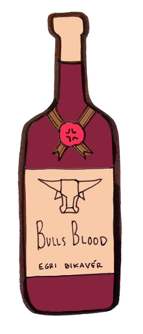 Egri Bikavér means “bull’s blood” and, as the name implies, it can be a pretty badass red blend, rich in tannin and spice. Legend claims that the wine gets its name from a famous incident during the Ottoman siege of Eger in 1552, when the Hungarian troops were caught drinking copious amounts of spicy red wine by Turkish onlookers. Seeing the bloodshot eyes, red-stained beards, and fiery temperaments of the wine-drinking Hungarians, the Turkish soldiers rushed back to their captain, insisting that the Hungarians were not to be messed with for they had been drinking the blood of a bull!
