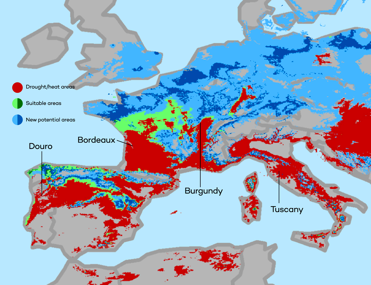 The world’s most important wine regions, like Napa, Bordeaux, Burgundy, Walla Walla, Rioja, Douro, Barossa and Stellenbosch, are on an irreversible course towards excessive summer heat and drought.