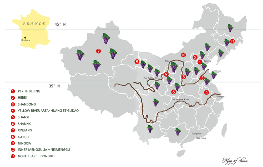 China’s wine history dates back to long before all of Western Europe. The oldest fermented beverage in the world was found in the Yellow River basin around 6000-7000 BCE and contained rice, honey and hawthorne fruit and/or grapes. The China wine industry is growing rapidly and already has 11 distinct wine growing regions containing hundreds of indigenous Chinese grape varieties.