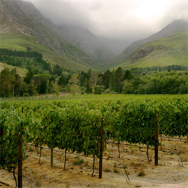 Simonsberg is a mountain that straddles Paarl to the North and Stellenbosch to the South. Simonsberg-Stellenbosch has deep, reddish clay soils that create wines so bold they usually need to be cellared for several years to subdue their massive tannins. After waiting the right amount of time (usually 7 years), the Bordeaux blends and Syrahs review flavors of smoky black currant, black cherry, tobacco and cedar. These wines are perhaps the closest analog to Bordeaux. Besides reds, this region also produces a unique-to-SA white blend with Chenin Blanc, Sauvignon Blanc and often a little Verdelho (a dry climate white from Portugal). The whites have bright acidity, a waxy-creaminess from subtle oak-aging, and flavors of lemon, apple, and toasted almond.