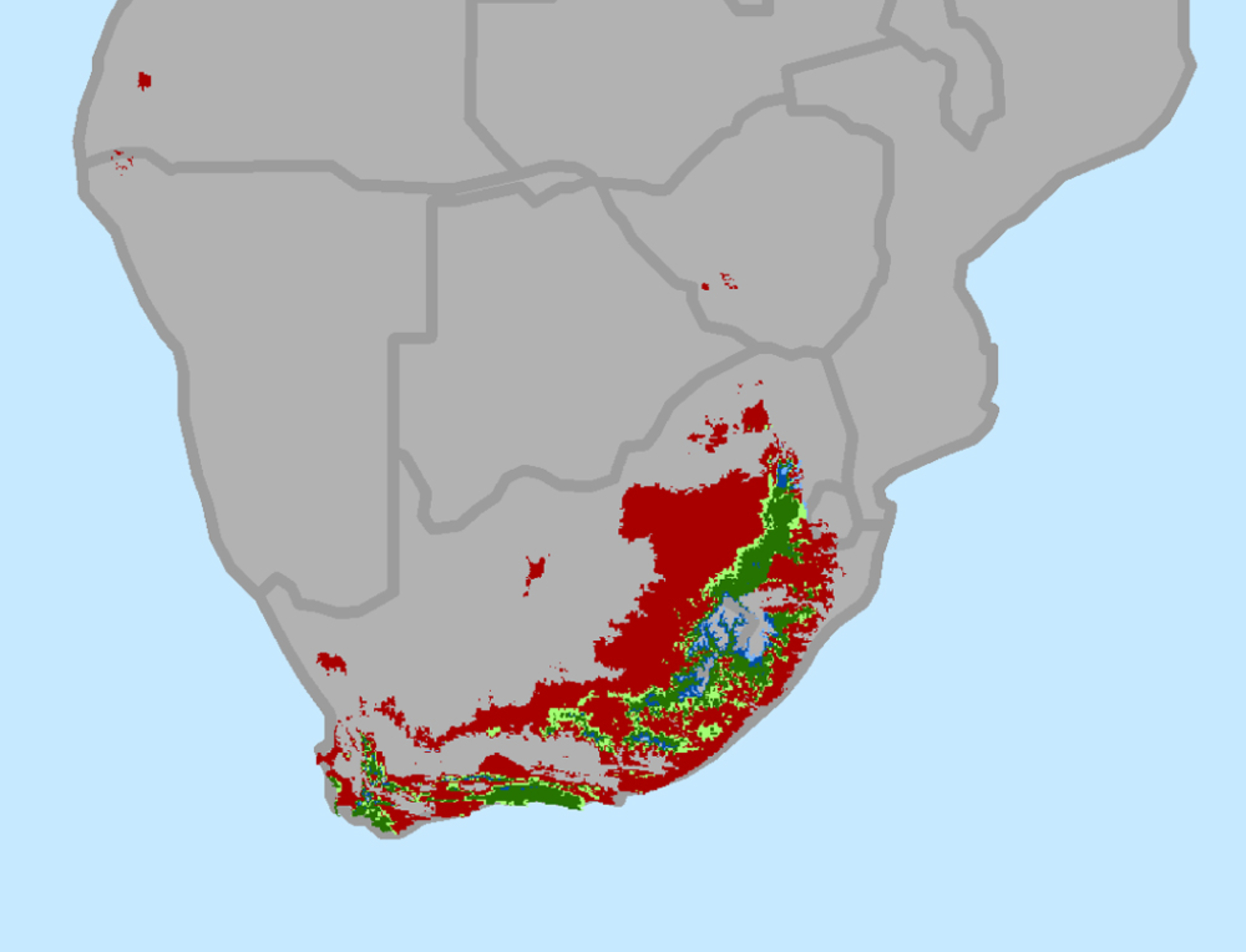 Maps show areas in red will have extreme heat and drought stress in 2015. Maps created by Conservation International